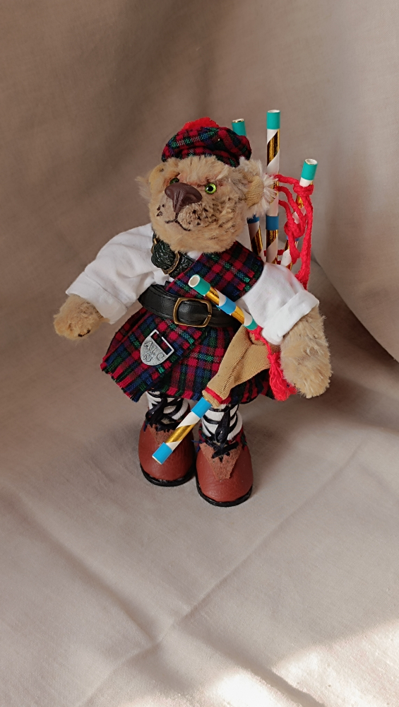 Мишка Тедди в национальной шотландской одежде, 18см. Полностью подвижен. Стоит самостоятельно. Искусственный мех, шплинты, утяжелитель.