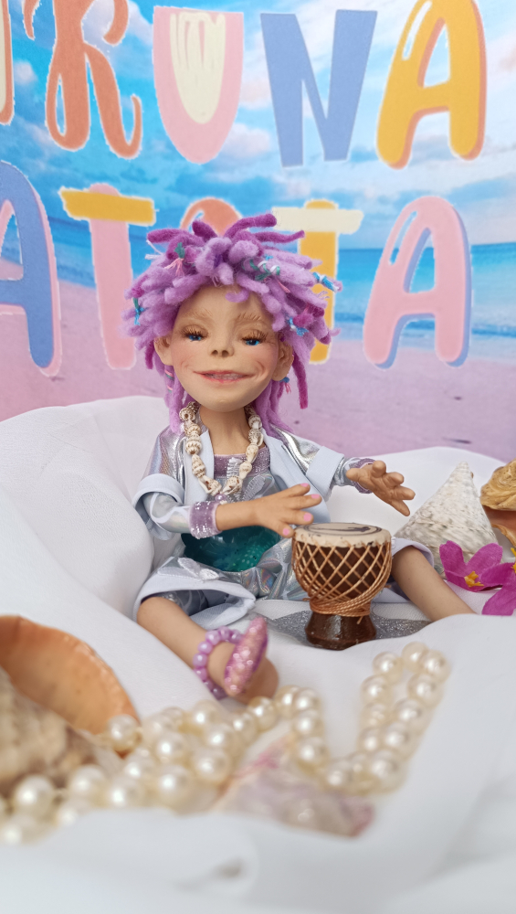 Эта авторская кукла ручной работы заряжена радостью и позитивом, она обязательно заставит вас улыбаться, принесет хорошее настроение! Рост 20см. Полностью подвижна. Голова поворотная, из запекаемого пластика. Дреды - овечья шерсть.